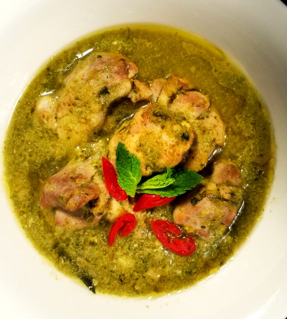 - Add Spices & stir constantly on reduced heat until green oil surfaces